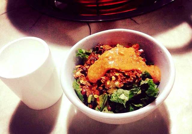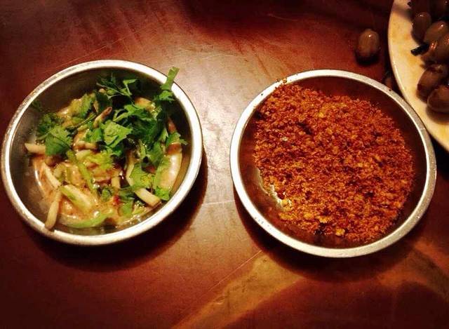 火锅蘸料,辣椒、薄荷叶和鱼腥草搭配羊肉的味道好特别。