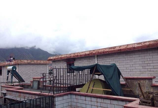屋顶的这个帐篷是一个女大学生的,她一路从浙江搭车到拉萨,勇敢!