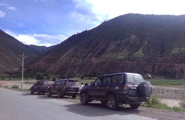 这就是我们的车队,三辆拉风的越野车,三位又酷又帅的藏族司机师傅,一位漂亮的纳西族姑娘,三位广东乘客,一位海南姑娘加上我。