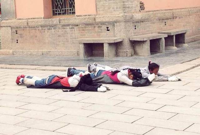 在大昭寺门口,看虔诚的藏民围着寺庙一路嗑着等身头朝拜而来,一个个衣衫褴褛,满面沧桑,看哭了。