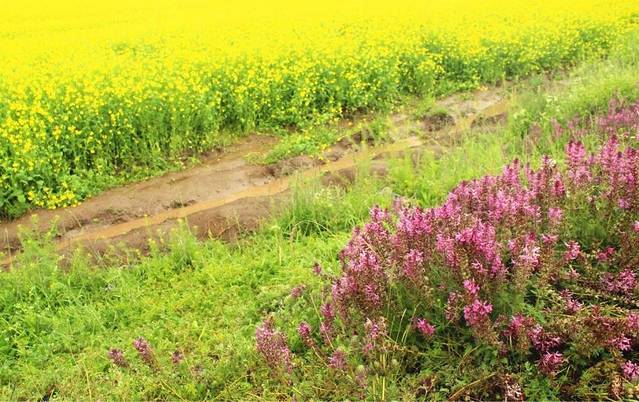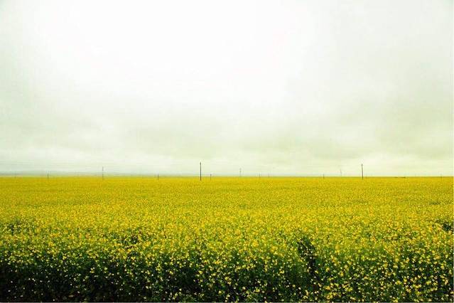 公路两边是一望无边的油菜花,已经很壮观了,如果是晴天,那景色一定美到极致。