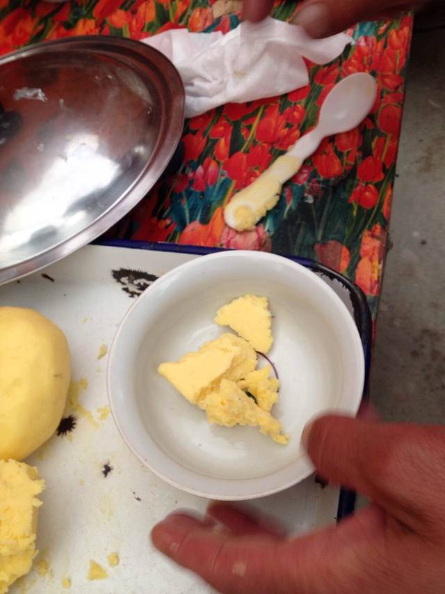 开始习惯酥油茶的味道了,在又冷又饿,又有高反的时候,喝酥油茶是最好的,好舒服啊,喝到胃里暖暖的,身体也暖了。