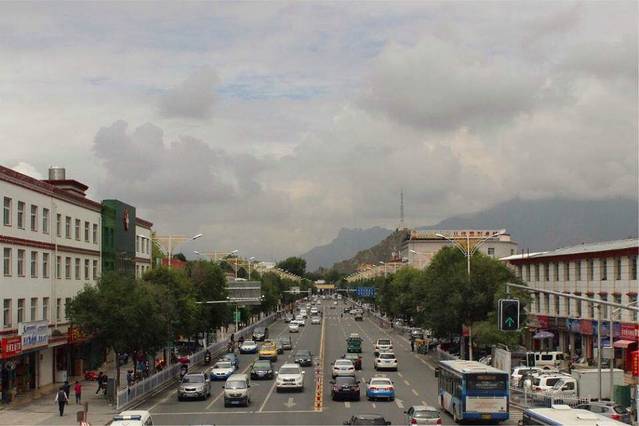 这是拉萨市中心最热闹的商业街,拉萨第一天,睡到中午,搭公交逛拉萨。拉萨的太阳起的晚,走的迟,很配我的生物钟。