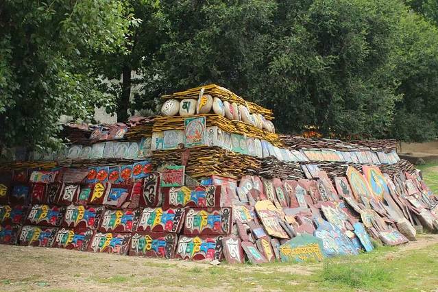 寨子里很多这种刻字的石头堆成的石堆,问了藏民,知道是经文,祈福的。