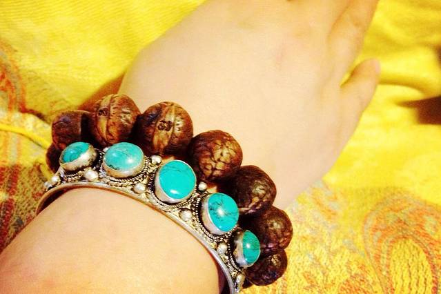 这里是民族工艺品的集市,今天淘了一条绿松石的手链。