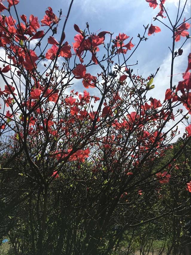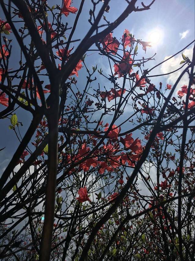 今年天气清寒,杜鹃花也怕冷,虽然花败,但星星之红已经燎原