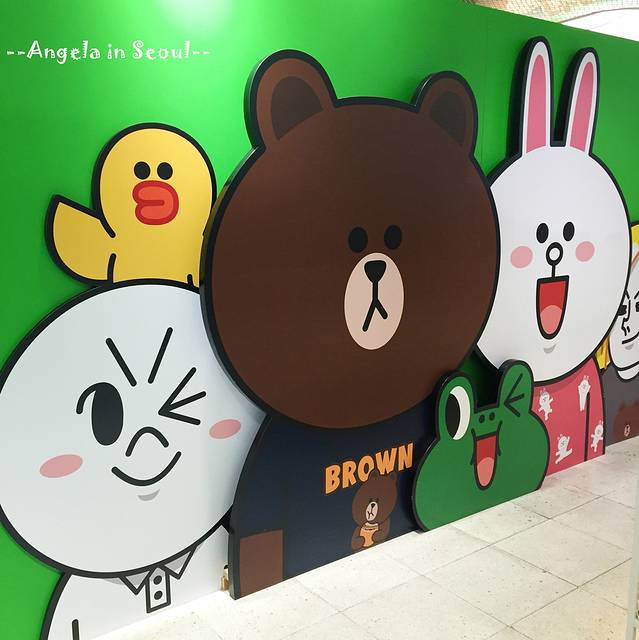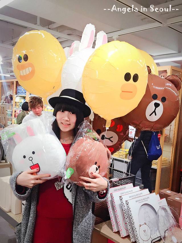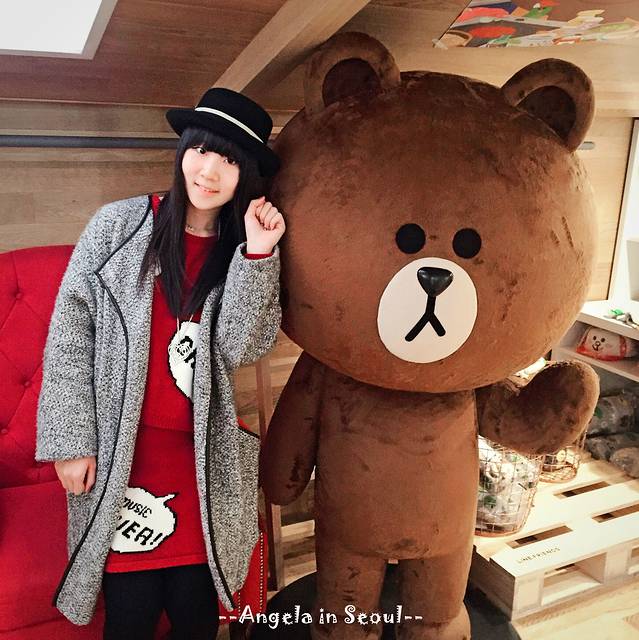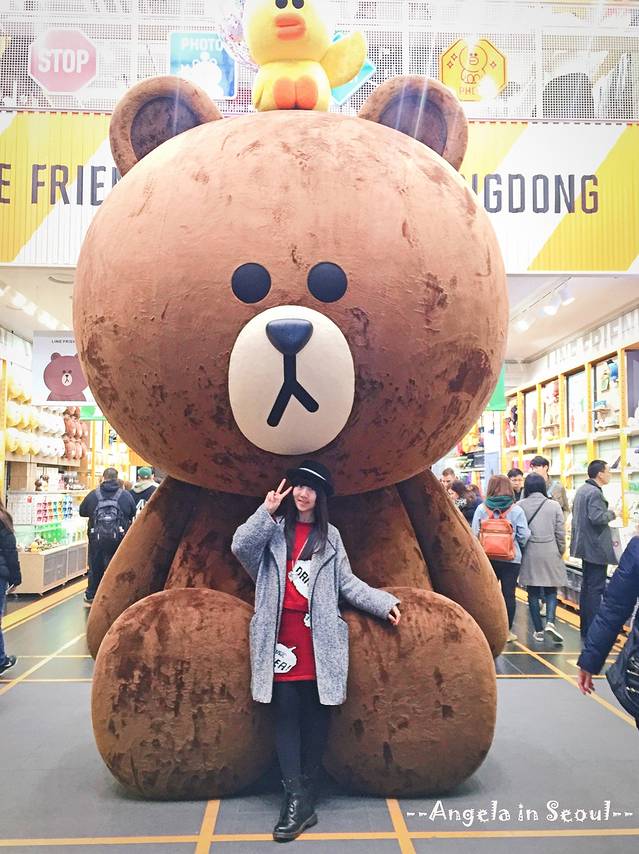 在韩国,到处都可以看到【Line Friends】的专卖店~之前还不理解为什么它们如此受欢迎,真正看到才发现自己对这些萌物同样抵抗力为零!明洞有一家很大的【Line Friends】分店,门口有一只两人高的布朗熊玩偶,和它拍照的人竟然排起了长龙~我也没抵挡住诱惑,脑残粉一般地跑去排队,留下了这张珍贵的皂片~~