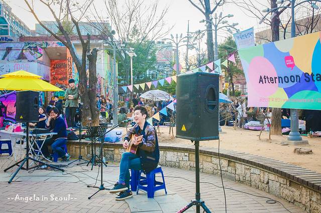 每年3月-11月,每周六13:00-18:00开放,雨天停办~就在弘大校门附近的一个小公园里,看到这个滑梯就是了~很幸运地参观到这个一周一度的“盛会”~~