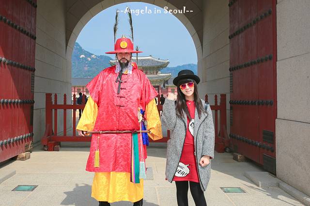 从清溪川继续前行,沿路的气场变得越来越庄重~不知是不是有什么活动,有好多警卫在路边站岗~抵达广场,眼前豁然开朗,远处可以隐隐约约看到古色古香的光化门,从光化门进去就是著名的【景福宫】了~因为对景福宫这类的古迹没太大兴趣,再加上去过比这个磅礴许多的故宫,所以就在光化门简单参观,放弃了景福宫这个景点~门外有身着传统韩国服饰的士兵们在站岗,游客可以与他们合影留念,每隔一段时间他们还会进行所谓的“换岗仪式”~置身于此,一种厚重的历史感油然而生~