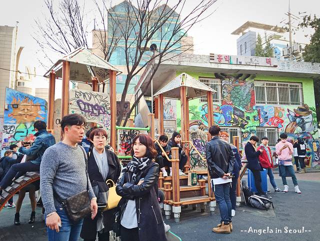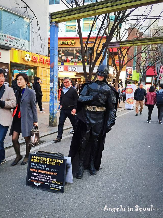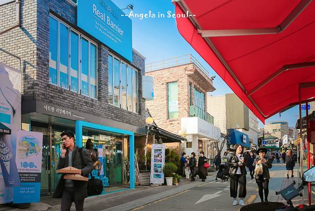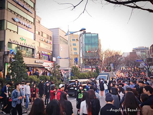 越往弘大走,越理解某篇攻略里的一句话:“这里白天要多冷清有多冷清,晚上要多热闹有多热闹”~当时是下午四五点钟,这里已经开始跃跃欲试出华灯初上后的热闹景象,俨然又一个明洞~但不同的是,明洞是纯商业街,而这里在艺术学府【弘益大学】的熏陶下,更像是艺术的天堂~