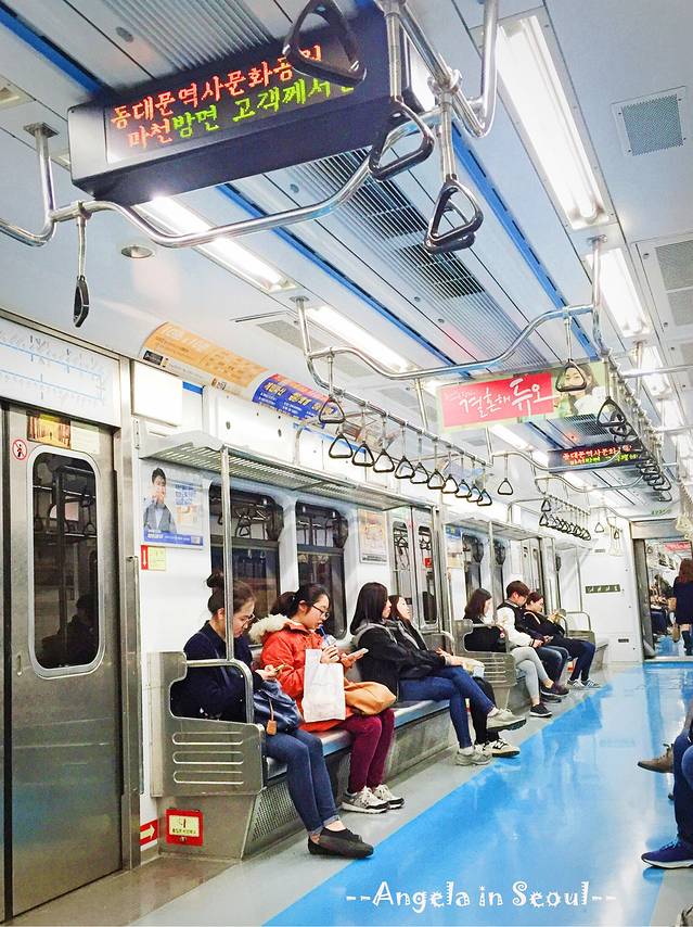 韩国的地铁非常宽敞舒适~地铁上有专供老弱病残人士乘坐的座位,即使车里有很多人站着,这些座位也会为需要的人空着~老人们一上车,都会直接到这些座位入座~再一次为韩国人的高素质点赞!
