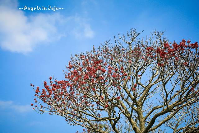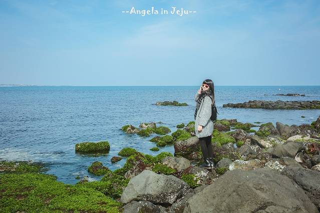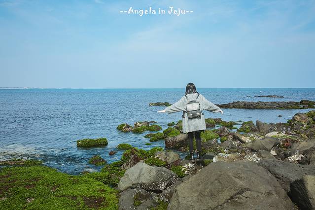 一路上,窗外都是郊外之景,满眼的山和林~虽然没有绿树成荫和繁花似锦,但是初春萧瑟中又带着暖意的气息,倒是把这些枯枝修饰出硬朗舒展的美感~从济州市到西归浦市,1个多小时的路程,在看风景发呆中显得如此短暂~视野瞬间变得开阔,蓝天一下子占领了大部分瞳孔~我知道,济州岛之旅的第一站,抵达。