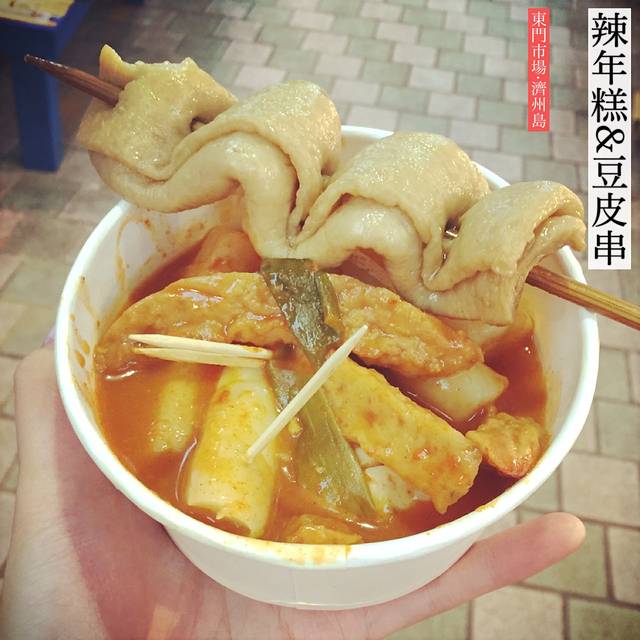 没有找到传说中running man光顾过的小吃店,但幸运的是赶在一家店关门前的最后一刻买到了心心念念的【辣炒年糕】,里面还有整颗煮鸡蛋和筋道软嫩的鱼糕,超级好吃~这种【豆皮串】是当地随处可见的小吃,味道还不错~