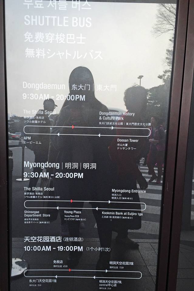 ❤交通❤ 从金浦机场到【明洞天空中心酒店】,要乘坐【6021路大巴】~向机场工作人员询问大巴上车地点,在相应的站台旁等候就可以了~那里会有工作人员帮你看管行李,询问你下车的地点,然后在行李上贴好标签,相当专业有序~不用提前买票,上车付钱即可,7000韩币/人~发车间隔是30mins-35mins,要耐心等待~车子非常高档,宽大舒适的座椅,干净整洁的车厢~此时只需尽情看向窗外就可以了,奔驰过开阔的郊外风景,也穿梭于繁华的都市之间~一个多小时的路程完全不是浪费时间,而是城市观光般的享受~从【皇家酒店(Royal Hotel)站】下车,跟着【韩巢地图】走很近的距离,便可抵达酒店~