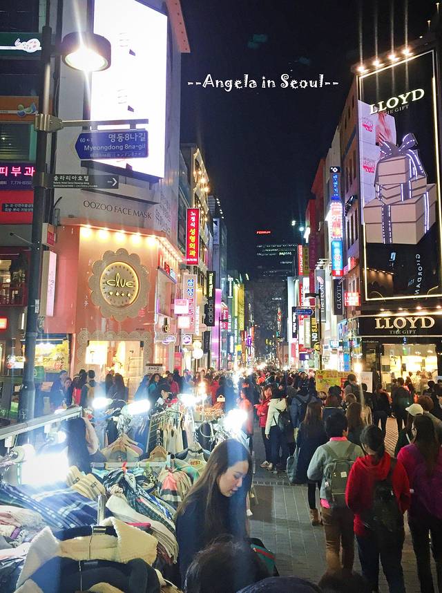 暴走的一天接近尾声,晚上不安排更多的行程~像逛自己家后花园一样逛逛酒店附近的明洞购物街,感受那份不夜城般的繁华~