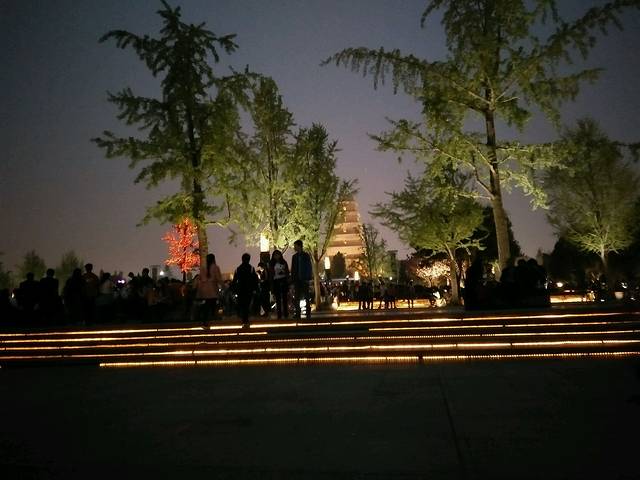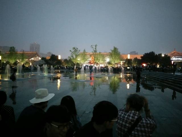 大雁塔🎵喷泉广场,大家都围着喷泉而坐