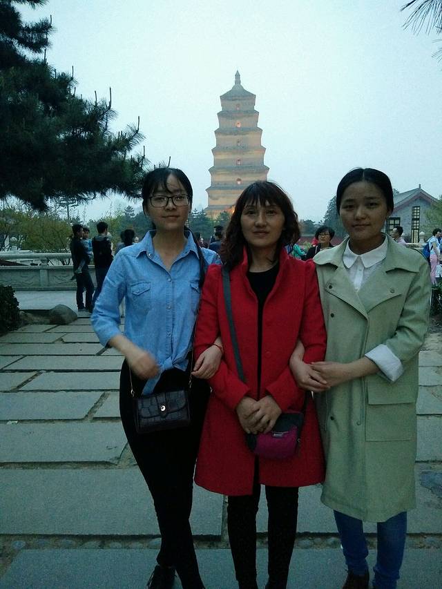 走到宁陕太阳刚出来,我们休息了一会。上午9点半我们就到达了预定的宾馆门口,步行到省医院,也就走了20多分钟。等待女儿美玲下班,她姐姐拍了一张她们科室大门照片给发了过去,以示我们到医院了。等到11点左右,美玲终于下班出来了,看到我们很高兴,在工作楼前我们拍了合影。由于美玲下午还要上班,我们和琪琪还有她朋友一起先去小寨转转,吃了点香港甜品,都是在大小姐琪琪的安排下被动吃的(^O^)。玩了下洋格。晚上去了大雁塔,人真多,往回走到了钟楼才打到车……