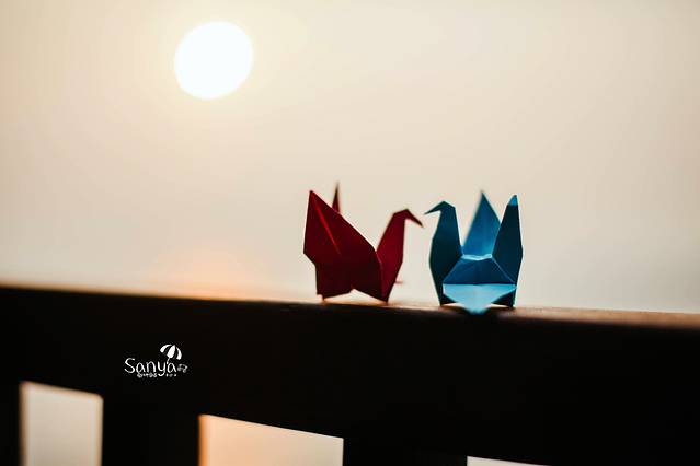 酒店放在床上的欢迎道具千纸鹤,也在欢迎太阳公公