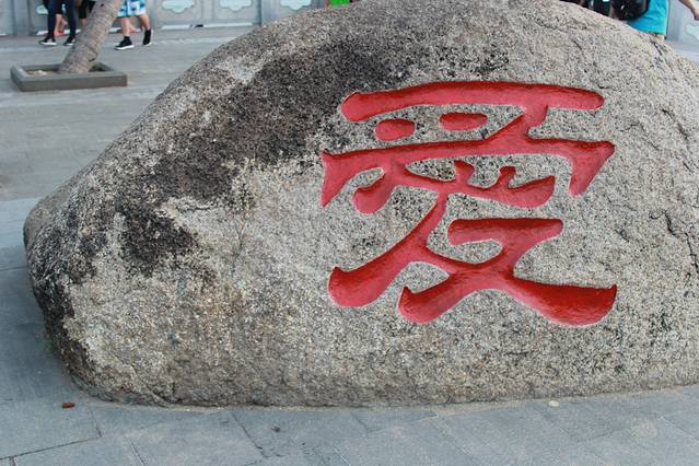 逛完蜈支洲岛之后,我们连忙赶往我们的下一个景点:大小洞天,因为我们要在大小洞天那里吃午饭,午饭吃的是自助餐,全是素的,味道一般,算了不挑了,能填满肚子就行了。吃完饭之后,我们就进了大小洞天的景区。大小洞天里有南山不老松、小洞天、寿字碑等等,我们都在寿字碑旁拍了照片,我们都做了个”比“的姿势,寓意寿比南山!
