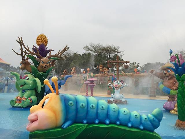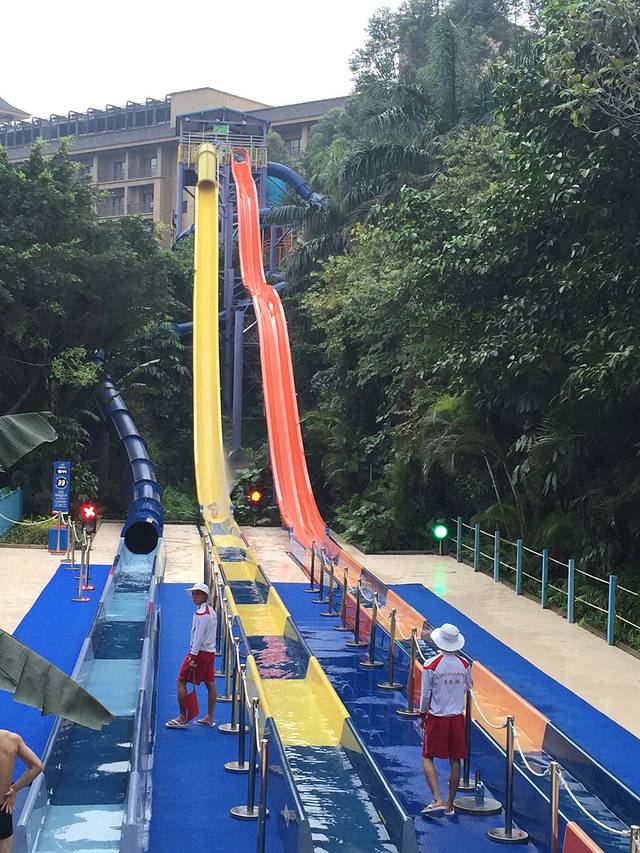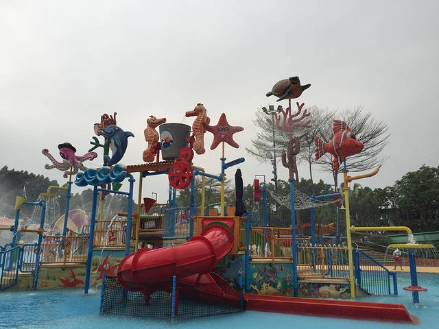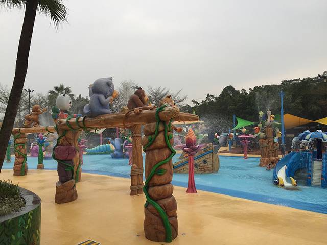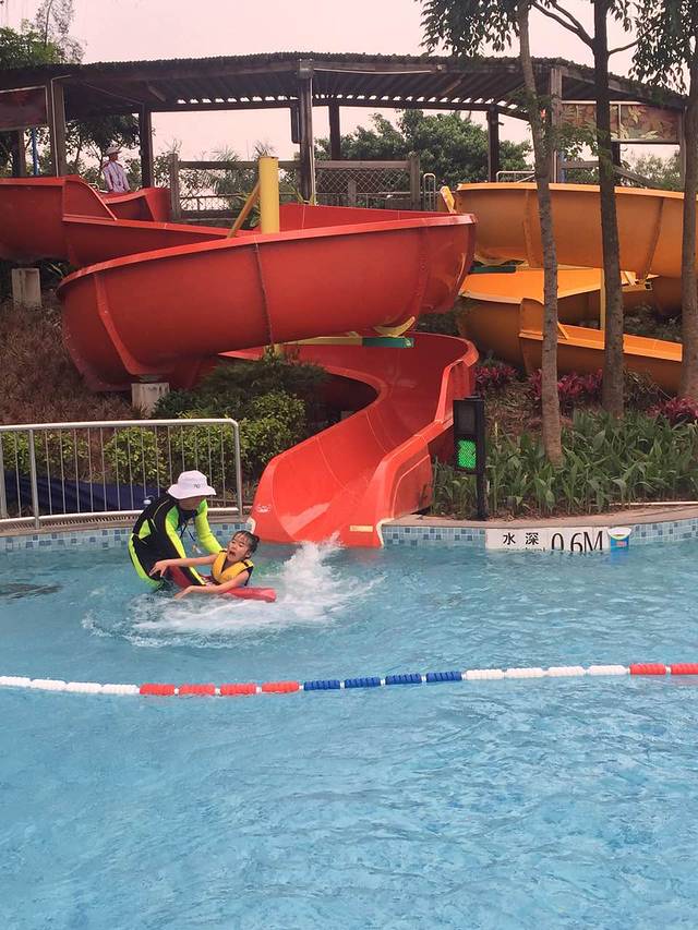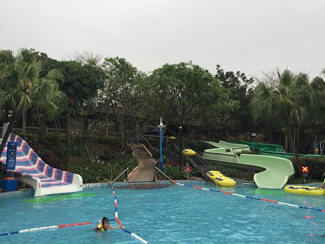 但是玩儿的很开心。广州25度的天气比北京好像热很多,空气潮热的感觉让人想赶紧泡进水里,大多数水池是38度的温水。不知是不是第一天开园的缘故,人非常少,简直像包场一样。防护措施也很到位,池边随手可取护生衣,小盆友下水要求必须穿的哦!各个池外都有二至三个救生员。儿童池里还有两个直接站在水里,不离左右地保护,真是贴心极了。