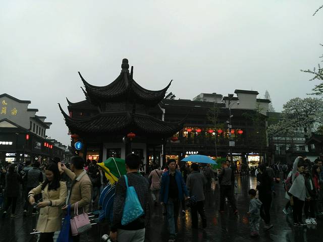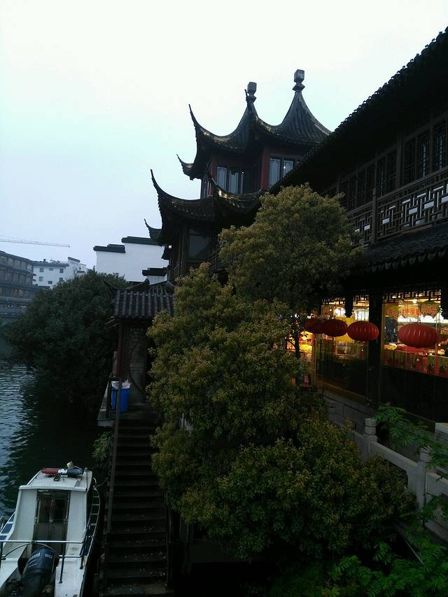 秦淮河畔,去了基本就是看人了。人头攒动,想拍完整的照片是不能奢望了。雨越下越大,扫了坐画舫的兴致,举伞拍照越来越不方便。挑了一家晚晴楼,入座,晚膳。沿途走走看看,体会夜色中的秦淮河畔。