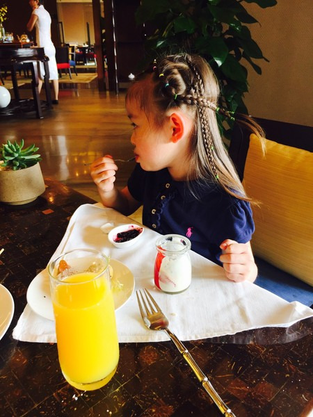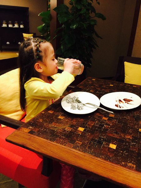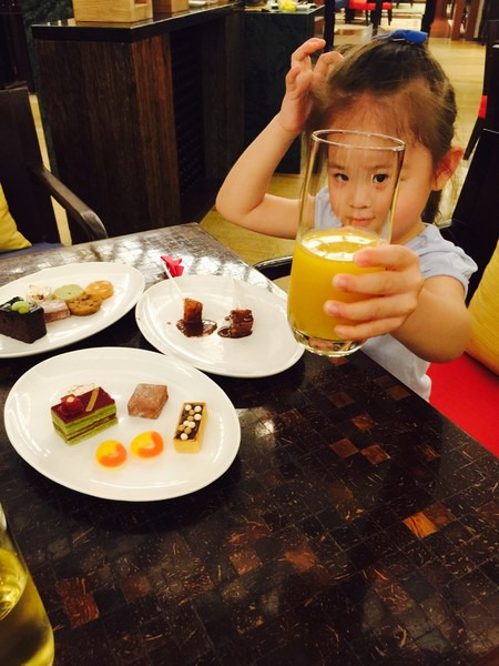 回酒店后正好错过了当晚的巧克力时间,扒着门痴痴的往里面看,这时候emily阿姨看到了可怜的茜茜,就想办法给茜茜拿了一小杯巧克力。第二天还特地给茜茜送来一盆特制巧克力拼盘。最后天回去时茜茜还说不要回上海,要留在三亚。只要她开心就好,我们每次带她出游也就很值得啦。爸爸妈妈会在你记忆模糊的时候用文字和图片帮你保存下这段美好的回忆。让你长大后看看游记也会体会到爸爸妈妈是有多么的爱你。