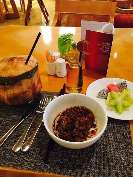 三餐基本会有一道面食馄饨或者面条,粉条之类的,还有两道海鲜一荤一素一炒饭外加一道汤,还有各种水果和饼干蛋糕,遇到小朋友还会给宝宝餐具和自制棉花糖,守护天使还会在爸爸妈妈去拿食物的时候陪宝宝玩,行政酒廊地方不大,吃的也只是简餐,要求不高的亲可以完全不用另外开销。一楼的自助餐我们住的五天里面去过一次,虽然吃的品种多,但是人也多很嘈杂,吃着吃着就一身汗,行政酒廊想对来说人少安静,还可以放心带宝宝去自己拿吃的,楼下的话就要全程抱着因为她人小,大人看不到她人一多就会发生碰撞。