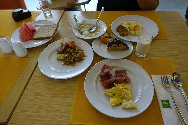 全程住在ibis,国际连锁快捷酒店硬件还是可以的。免费wifi,健身房,游泳池,麻雀虽小五脏俱全。含的早饭一般但是也可以吃饱,只是没想到是清真的。