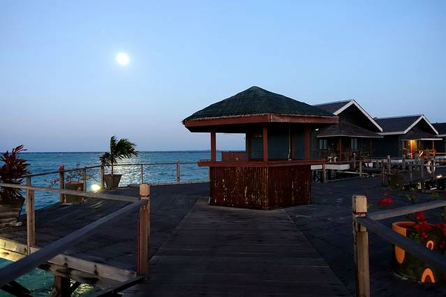 在邦邦岛上住的是两间水屋,一间沙滩屋。水屋有个360度无敌海景露天阳台,躺在沙滩椅上敷个面膜吹吹海风,看看星星数数月亮。你可以做任何你想做的浪漫的事,但是距离餐厅和沙滩有200m的距离。沙滩屋中午会比较炎热,一出房门就能躺在椰树间的吊床上吹着海风听海浪拍打沙滩的声音,让你放下所有的烦恼,融合在大自然中,而且离餐厅只有几步之遥。