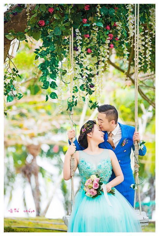 第二天我们两个一大早五点钟就爬起来收拾行李,换衣服,然后叫车赶到三亚湾的婚纱店,准备开始一天的婚纱照之旅,真是又幸福有劳累啊!从早上八点半开始化妆换衣服,一直拍到晚上九点才拍完,一天的时间,谢谢私人订制的亲们,逗我们开心,还给我们照的美美的照片!接下来我们就欣赏几张婚纱大片吧!请忽略丑丑的我。。。