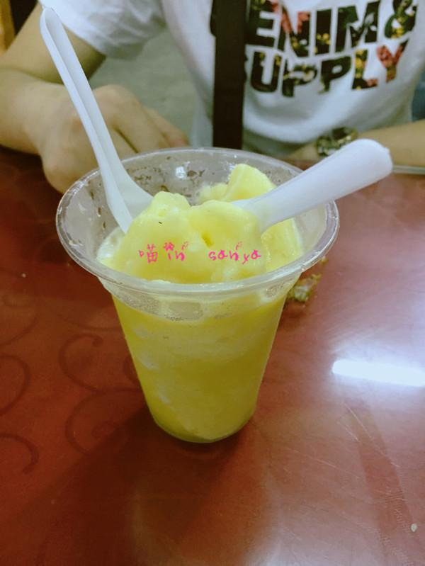 ???这就是小木在三亚的第一顿饭!一杯暴爽的菠萝芒果冰!真的是好吃!给15个赞!!!!