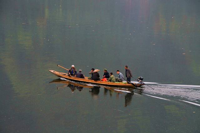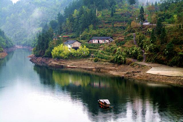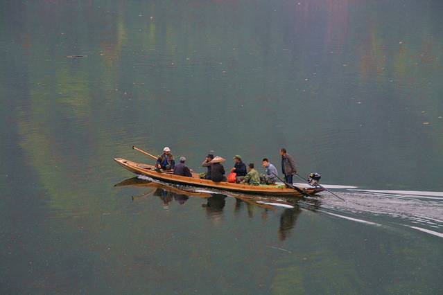 2016年3月份,我们从酉水河国家湿地公园。搭乘当地人的赶集交通船,每人10元,坐在船头,一路下行,酉水河风光无限,90分钟后抵达大溪古镇。