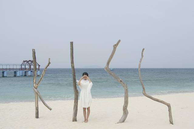 情人岛上,后面有在拍婚纱照的