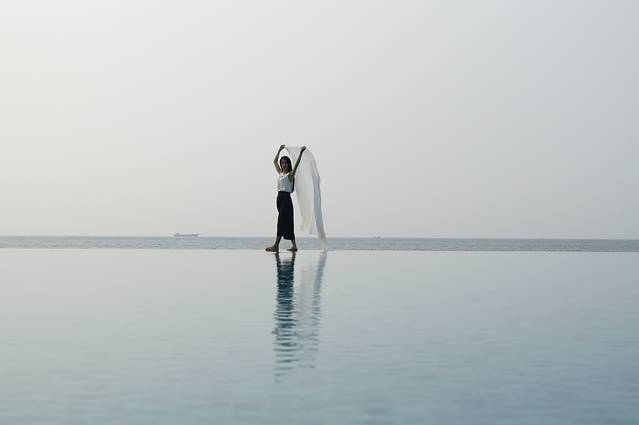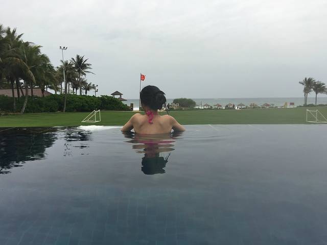无边泳池,就是温度不高,硬着头皮下了水。
