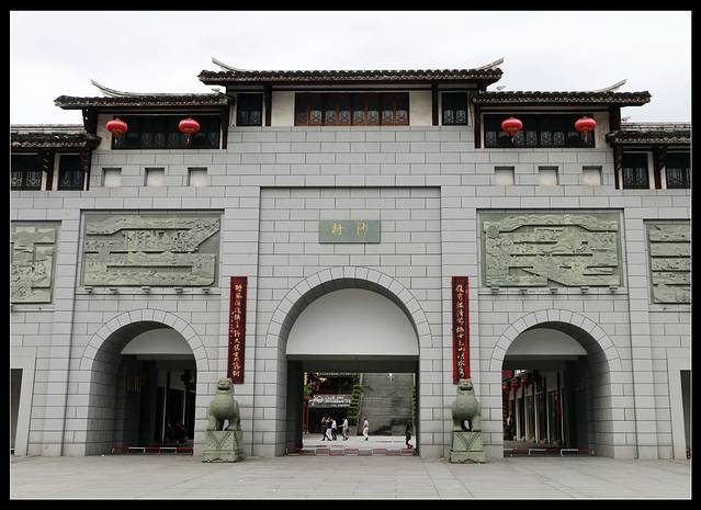 左边为名城,右边为美食。整座建筑非常宏伟,透露出古典的气息。石狮子、红灯笼、墙上浮雕,各种带着中国传统味儿的元素随处可见。