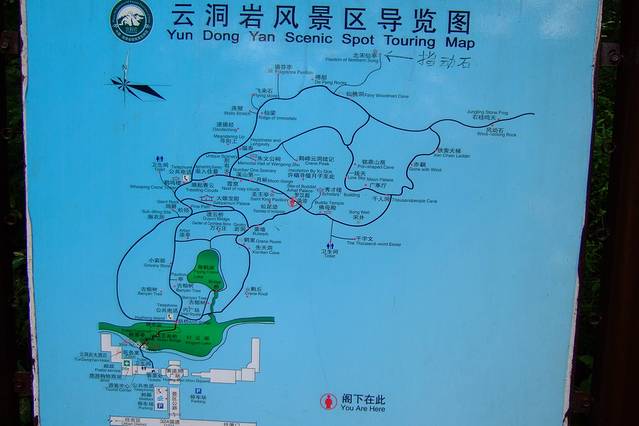 上山有多条路线,除非有超人的体力,否则是走不完这许多景点的,只能择其一而上,因对攀爬能力的自信和对身材的不自信,我避开了“一线天”,走较为惊险的铁索天梯。