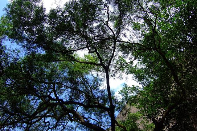 翠绿的树木和湛蓝的天空,格外舒服的天气。