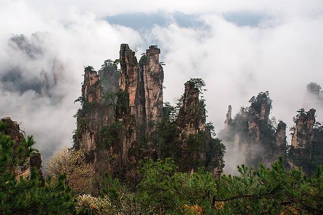 张家界号称三千奇峰,造型千姿百态。南天一柱,秀才藏书,神鸡啄食,劈山救母···在这里,你可以极尽自己的想象力,去赋予这些奇峰无穷的生命