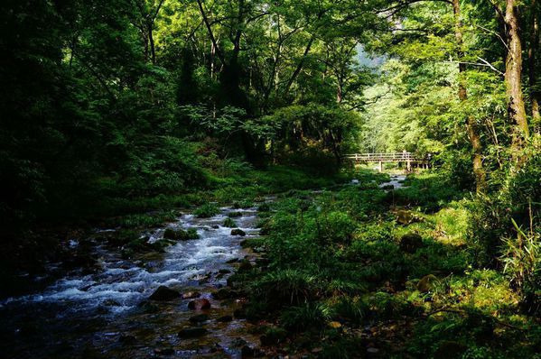 在峡谷走,山从两边过,穿行在峰峦幽谷,移步换景,胜似画中游。溪水明净,跌宕多姿,让人产生一种幻觉,以为传说中的桃花源就在这条金鞭溪的尽头。