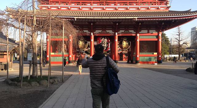 一大早就奔向了浅草寺,幸运的求到了一支大吉签。在日本求签,如果是大吉,签是自己带走的,如果是不吉,可以挂在大殿门外架子上或树上。日本什么东西都能成为神,狐狸猴子是神,乌鸦也是神鸟,在东京总是能听到乌鸦在叫,每个神有各自的工作。进庙前先洗手,拜的时候鞠两个躬,然后双手合拾拍两下。有很多种方式祈福,献一个鸟居是比较高端的,挂个灯笼,贴个纸都有。整个寺庙没有围栏,经常可以看到上班族从寺庙里穿过,随性拜一下。