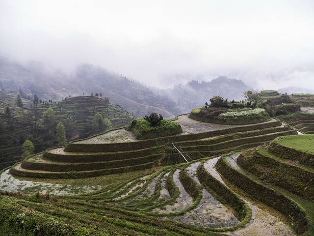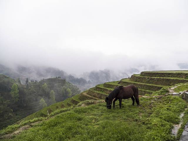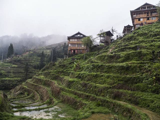天气一直灰蒙,于是改变骑行阳朔的计划,立刻赶赴龙脊梯田,虽然听驴友说现在不是看梯田的时候,但我决定了,去山里面静一下也不错的。