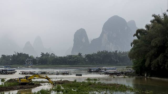我有一个梦,就是在漓江烟雨下开着挖掘机......后面自己脑补。