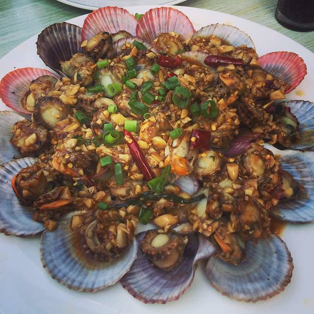 辣炒蛏子,鲜!比北京的肥美多了,而且是鲜甜的!!这家店在四方路和黄岛路交口。大众点评分数很高,老板人特好,实在,东西确实很新鲜,味道也足。