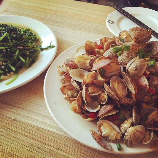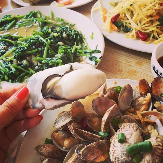 炒蛤蜊,三个素菜,三个海鲜,一共130元