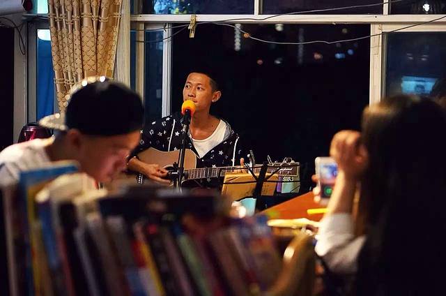 店长经常在晚上会抱着吉他唱他喜欢的民谣
