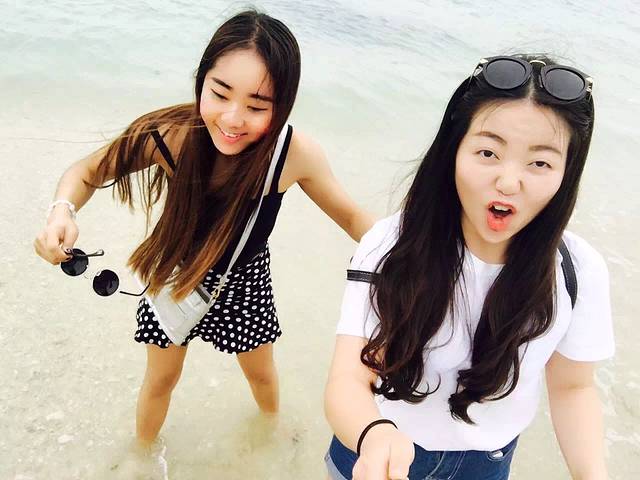 两只第一次在白天看到海的土鳖笑得龇牙咧嘴的~