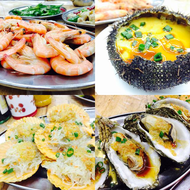 白灼基围虾海胆蒸蛋 粉丝扇贝 蒜蓉生蚝~ 便宜又超级好吃