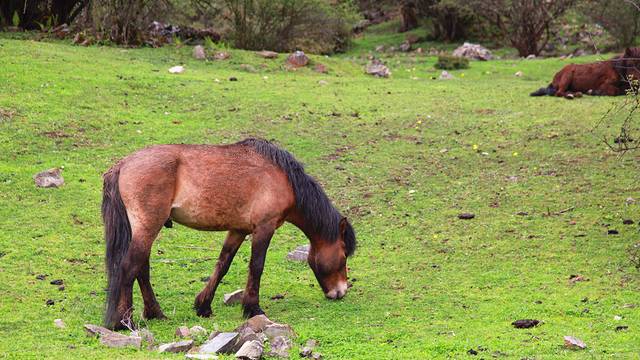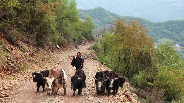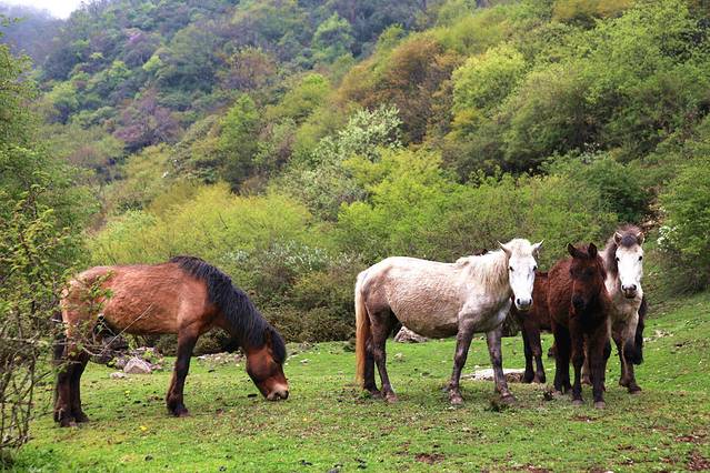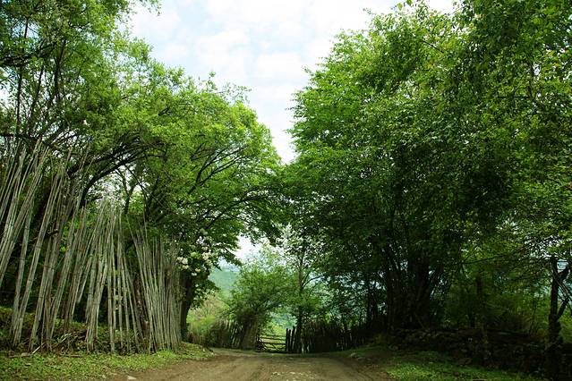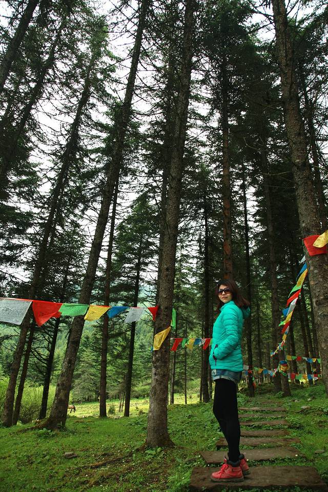 参天古木、高山草甸,原始森林的风貌保存得很好,轻松穿行在空气清新的天然氧吧里,藏族牧民的牛羊,骡马甚至放养的猪儿在山坡草甸惬意地啃食牧草,让人觉得仿佛到了世外桃源。(景色将就吧)