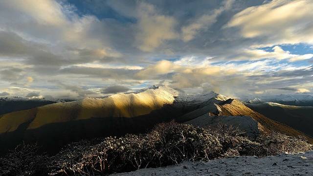 达瓦更扎是能与牛背山、轿顶山相媲美的一座360°观景平台,同样有云海,有日照金山,而且还是蜀山皇后--四姑娘山的幺妹峰。 达瓦更扎位于四川省宝兴县硗碛藏族乡嘎日村境内,达瓦更扎(为嘉绒藏语,意为“美丽的神山”)。此地海拔约3900米左右,面积近200平方公里,属于邛崃山脉,地势北高南低。位于四川省雅安市、甘孜州以及阿坝州的交界处。今年10月,宝兴县嘎日村为帮助当地藏民发展牧业修建的一条24公里的“通天路”建成通车。该路尽头地势陡险,视野开阔,既可环顾北面的四姑娘山、南面的帕格拉神山、西面的贡嘎群峰等名山,也可观赏云瀑、草甸、森林、湖泊、峡谷、藏寨等各类景观。