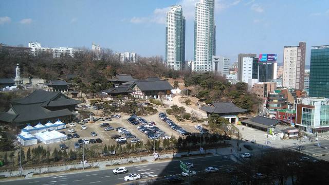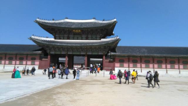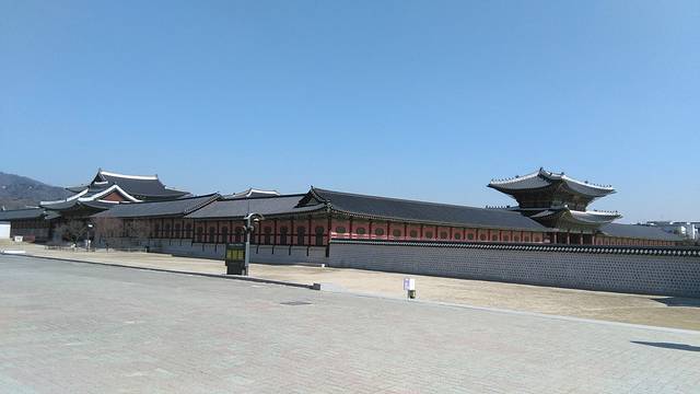 除了地铁到达了景福宫,还是蛮开阔的,来得时候是2月,正好中韩文化交流日,免门票,到购买门票的地方拿两张门票就可以了,交给门卫进入宫殿